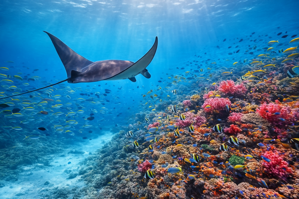 コモド島は世界でも有数の「マンタ(オニイトマキエイ・ナンヨウマンタ)」との遭...